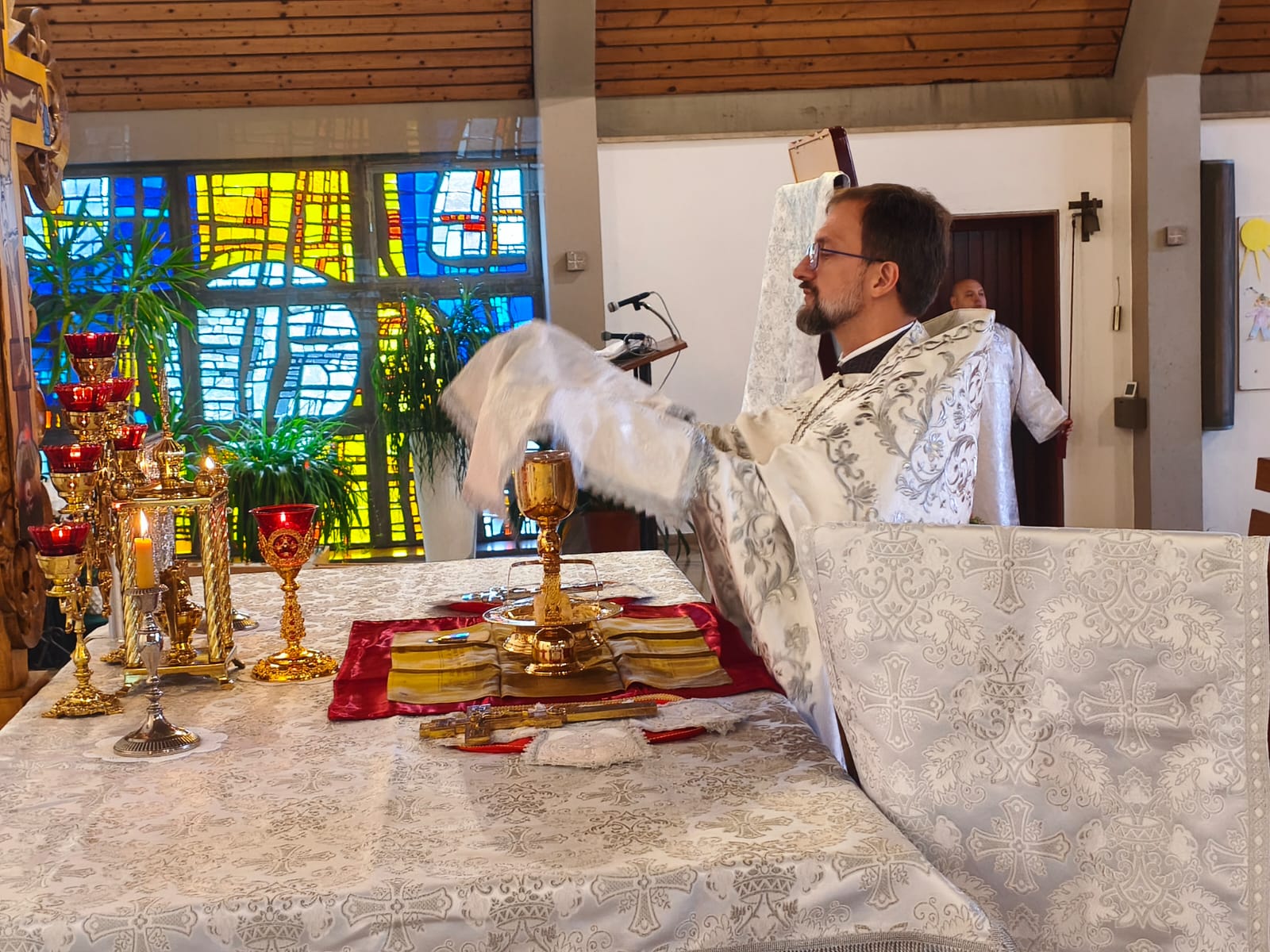 24 августа с. г., в Неделю 11-ю по Пятидесятнице, попразднство Преображения Господня, в приходе Сретения Господня г. Алена состоялась Божественная литургия. По благословению настоятеля ее совершил иерей Валентин Усачёв (г. Ульм).