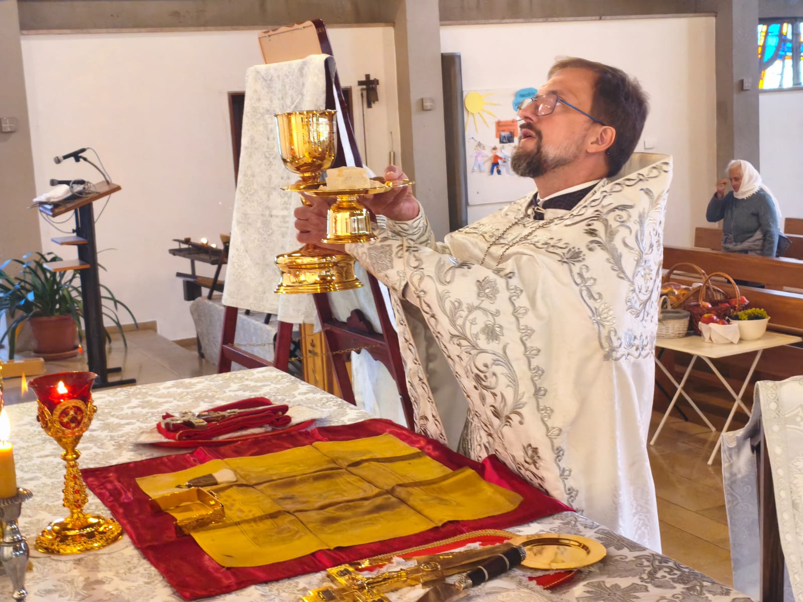 По окончании Божественной литургии о. Валентин освятил плоды нового урожая, принесенные православными прихожанами г. Алена, которые не смогли участвовать в богослужениях праздника Преображения в г. Ульме, а также поздравил всех присутствующих с праздником.